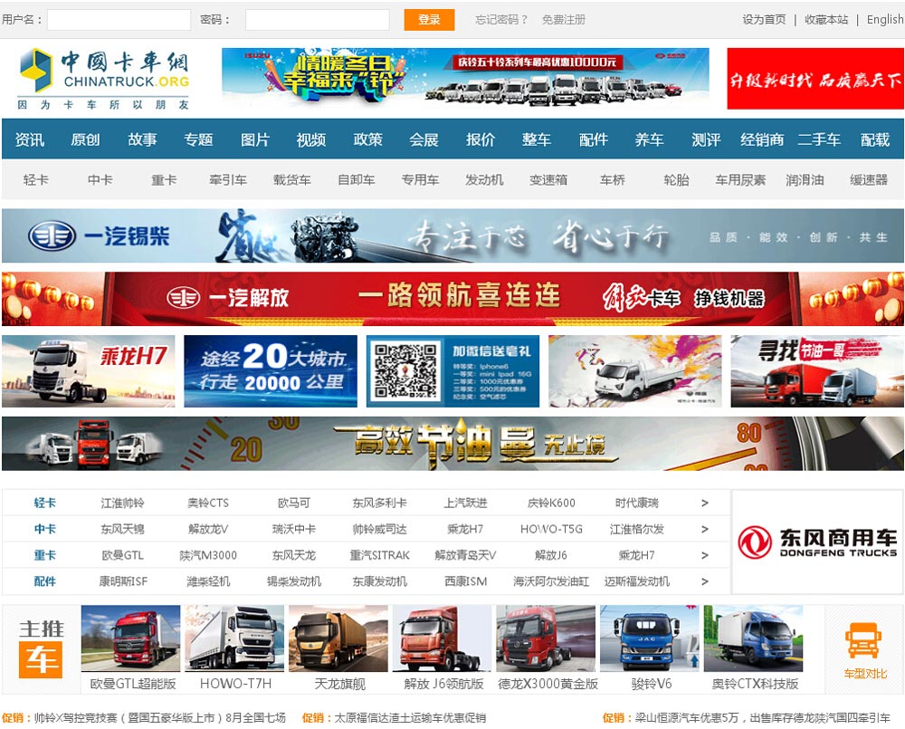 “因为专业,所以卓越”是中国卡车网创办以来一直奉行的经营理念,多年来,专致于深入浅出地帮助卡车行业进行全面快速的信息交流。中国卡车网共开办20多个栏目,涵盖了从品牌到市场等行业内各方面的内容。目前在品牌传播、精品卡车推荐、海外市场、二手卡车、信息增值等多方面取得了一定的沟通成就,受到了中国卡车行业的关注和支持,形成了与中国卡车行业的全方位、战略合作的信息资源基础。凭借其深厚的卡车行业背景、丰富的网络传播经验和行业内的高度责任感,多次成为北京国际车展、广州车展、广州专用车展,物流论坛、卡车大赛等重要活动的指定推广网络媒体。中国卡车网也成为了沃尔沃卡车、德国曼卡车、一汽解放、东风柳汽、东风日产柴、北汽福田、安徽江淮汽车、金华青年、重庆红岩、上柴动力、扬州海沃机械等国内知名卡车及配套企业所信任和首选的网络媒体。“帮助客户成功,我们以此为乐”是中国卡车网全体员工信奉的企业文化。多年以来,中国卡车网一直致力于真正地为卡车企业服务,解决卡车企业面临的问题,成为了卡车企业“信息咨询、品牌推广、海外发展、产品推荐”的战略合作平台。